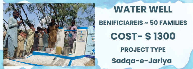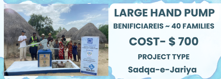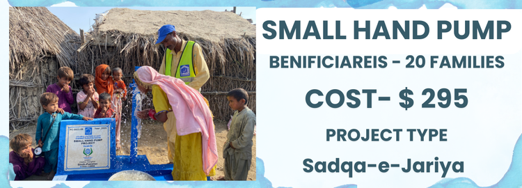 A durable, manually operated hand pump designed to provide safe and reliable access to clean water for households and small communities. It is easy to use, low in cost, requires minimal maintenance, and operates without electricity, making it ideal for remote and underserved areas.Install this water project as Sadaqah Jariyah in the name of your mother, father, or a loved one and let the blessings flow endlessly. Donate and Make a difference in the lives of 20+ families.