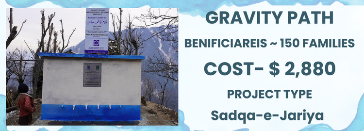 A robust gravity-fed water supply system with storage tank, specially designed for hilly regions in KPK and Kashmir. This project channels fresh spring water directly to communities, providing a continuous and reliable source of clean water.This is Ideal for remote and hard-to-reach areas, it ensures improved health, hygiene, and daily living for residents. Dedicate this project as Sadaqah Jariyah in the name of your mother, father, or a loved one, allowing the rewards to continue for years to come. Benefiting more than 150+ families.