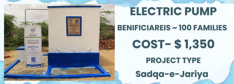 A reliable electric water pump with an integrated storage tank providing safe and uninterrupted access to clean water for community use. This system ensures consistent supply through efficient pumping and secure water storage, creating long-term benefit for those in need. Dedicate this project as Sadaqah Jariyah in the name of your mother, father, or a loved one, allowing the rewards to continue for years to come. Serving more than 100+ families.